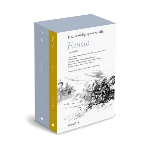 Caixa com dois volumes: Primeira parte (1808) e Segunda parte (1832) Tradução do autêntico alemão de Jenny Klabin Segall Apresentação, comentários e notas de Marcus Vinicius Mazzari Ilustrações de Eugène Delacroix e Max Beckmann Considerado o último grande poema dos tempos modernos e o maior clássico da literatura alemã, o Fausto de Goethe está para a modernidade assim como a Divina Comédia de Dante para a Idade Média: representa não só a criação máxima de seu autor, mas a suma do conhecimento e das aspirações de sua época. A presente reunião das duas partes do Fausto, bilíngue, traz ao leitor brasileiro a rigorosa tradução de Jenny Klabin Segall, acrescida de apresentação, comentários e notas de Marcus Vinicius Mazzari, o maior especialista brasileiro na obra goethiana. Além disso, traz ainda as famosas ilustrações do luminar do romantismo francês Eugène Delacroix (Primeira parte) e do grande expressionista alemão Max Beckmann (Segunda parte), tornando esta a mais completa edição da obra-prima de Goethe em nosso país.