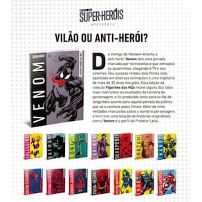 Vilão ou Anti-Herói? De inimigo do Homem-Aranha a anti-herói, Venom tem uma jornada marcada por reviravoltas e que extrapola os quadrinhos, chegando às telas e ao mundo dos colecionáveis. Seu sucesso rendeu dois filmes solo, aparições em diversas animações e uma trajetória de mais de 30 anos nas HQs. Esta edição da coleção Figurões das HQs reúne alguns dos fatos mais marcantes ou inusitados da carreira do personagem, e foi produzido tanto para os fãs de longa data quanto para aquela parcela do público que só o conhece dos filmes. Além de vinte verdades marcantes sobre o vilão, o livro traz uma relação de histórias imperdíveis com o Venom e o perfil do vilão. Livro integrante da Coleção Figurões das HQs.