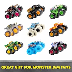 Aumente a emoção com o conjunto de caminhões fundidos Monster Jam em escala 1:64 pacote com 9 da Spin Master! Esta edição exclusiva da Target inclui 9 dos caminhões Monster Jam mais emblemáticos, incluindo Grave Digger, Megalodon, El Toro Loco, Max-D, Dragon e muito mais. Cada caminhão é autenticamente detalhado com gráficos oficiais, pneus BKT e design de chassi robusto para o máximo de realismo. Perfeito para crianças que amam ação Monster Jam de alta octanagem e colecionadores que procuram um conjunto raro. Construído resistente para acrobacias, quedas e diversão épica!