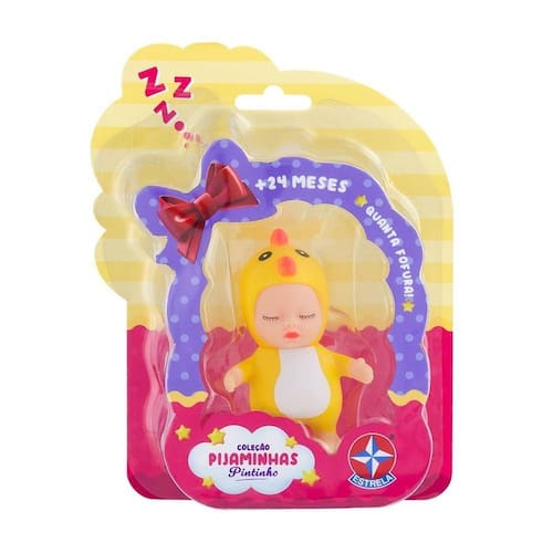 Coleção Pijaminhas Pintinho As pijaminhas chegaram para encantar coraçõe, bebês vestidas de pijamas de animaizinhos. A fofura está garantida com essas nenêns dorminhocas. É colecionável: Sim | batteries_required: Não | external_testing_certification: Certificado INMETRO | included_components: 1 Boneca Coleção Pijaminhas Pintinho | is_assembly_required: Não | item_length_width_height: 19 x 6 x 15 | manufacturer: Estrela | manufacturer_maximum_age: 36 | manufacturer_minimum_age: 12 | material: Plástico | number_of_items: 1 | part_number: 1301051200021_EST-PINTINHO | power_source_type: Não aplicável | safety_warning: Não recomendado para menores de 12 meses. Usar sob supervisão de um adulto. | target_audience_keyword: Infantil unissex | bullet_point#0: Boneca temática da Coleção Pijaminhas vestida de pintinho | bullet_point#1: Produzida com materiais macios e seguros, ideal para bebês | bullet_point#2: Excelente opção para presentear crianças ou colecionar