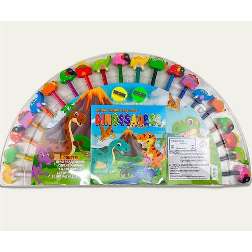 A Coleção Universo das Cores - Dinossauros leva as crianças em uma viagem no tempo fascinante, oferecendo páginas repletas de dinossauros para colorir, despertando a imaginação e o interesse pela história pré-histórica de maneira criativa e educativa. Acompanha 1 livro para colorir com 48 páginas, 2 apontadores, 20 lápis de cores e 20 borrachas especiais.