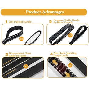 Fashion&cool Coleira resistente para cães especialmente grandes de até 68 kg, 1,2 a 1,8 m, refletiva, com absorção de choque, fivela de cinto de segurança, 2 alças acolchoadas para tráfego com controle extra