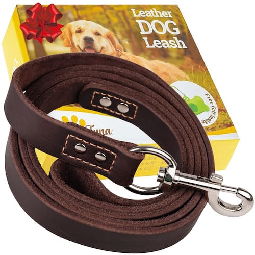 - Macia e forte ao mesmo tempo, a coleira de couro ADITYNA de 1,8 m pode evitar a sensação de queimaduras nas mãos quando o cão puxa com força. Nossa coleira de couro para cães é fácil de dobrar e segurar se você precisar manter seu cão por perto. Também pode ser usada como uma coleira curta para cães