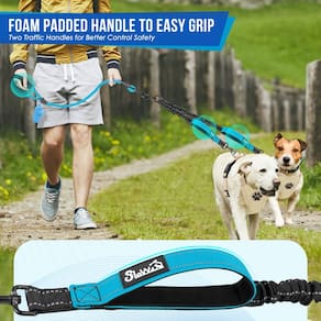- ?Elástico de absorção de choque? --- Com suas coleiras elásticas duplas que podem se estender entre 50 a 89 cm, nossa coleira dupla para cães pode suportar cães pesando entre 3,6 a 68 kg (2 tamanhos). A corda principal tem 89 cm de comprimento. A elasticidade das coleiras garante que seus animais de estimação fiquem confortáveis e livres para se mover.