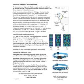 - Para melhor escolha de tamanho, sempre meça a coleira atual ou meça bem em torno do meio do pescoço do cão e, em seguida, adicione 5% mais para um ajuste confortável
