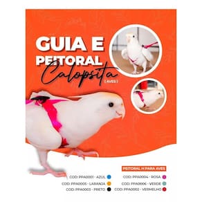 Coleira guia e peitoral para calopsita Mais uma novidade na morapet A guia e peitoral para calopsita morapet possibilita curtos passeios com o tutor com mais segurança. Porém, não aconselhamos o uso contínuo, ele é feito para eventuais saídas. Sendo bem prático e não oferecendo riscos a ave Tenha bom senso, e lembre-se que ao adquirir um novo acessório para seu pássaro, ele deve se acostumar aos poucos a usá-lo e isso requer tempo e paciência. O ideal é adaptar o uso do peitoral desde filhote e, caso a ave já seja adulta, esse processo será mais lento. -a guia e peitoral é feita de cetim, pois é um material muito leve e confortável; -a guia e peitoral é um acessório que deve ser com muita cautela; -em alguma aves o peitoral pode se tornar muito desconfortante; -nem todas as aves se adaptam ao uso desse tipo de acessório; -observe se a sua calopsita é dócil o suficiente para utilizar a coleira; -a coleira deve ser Utilizado por períodos curtos de tempo; -ao perceber um desconforto por parte da ave, suspender o uso; -em aves mais ariscas o uso do acessório não é recomendado; -nunca deixe sua calopsita usando o acessório sem a sua supervisão; -o uso inadequado e sem supervisão do tutor, poderá causar ferimentos. Marca: Não Informado