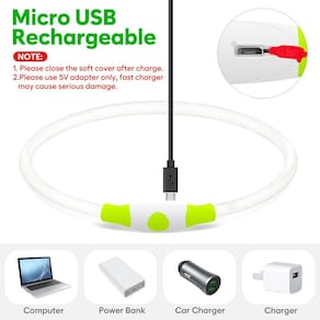 - ?Ecológico e resistente à água?Basta puxar uma extremidade do tubo de TPU e colocá-lo ao redor do pescoço do seu cão, depois deslizar a extremidade de volta para dentro da coleira para prendê-lo e alterar os modos de flash pressionando o botão de energia de silicone. O design resistente à água permite caminhar na chuva ou em outras condições úmidas.