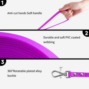 AUMAILI Coleira longa para treinamento de cães, impermeável, linha longa, resistente, para uso ao ar livre, 3 m, 4,5 m, 6 m, 9 m, 15 m, para cães pequenos, médios e grandes. Obviamente, qualquer cão inteligente pode mastigar através de uma coleira. É uma coleira de grafite, não um item para mastigar, então evite que seu cão a morda. É ótimo para passear com cães e treinar ao ar livre, é projetado especificamente para treinamento de cães. Comprimento diferente de linha longa perfeita para você escolher: 1,2 cm de largura de comprimento 3 m/4,6 m/6 m/9 m/15,2 m. É ótimo para o seu cão brincar e ter liberdade no pátio ou na praia. Coleira impermeável para treinamento ao ar livre em cores agradáveis: preto, azul, rosa, laranja e verde menta. - Coleira impermeável para treinamento de cães: revestimento interno de tiras de poliéster de alta resistência, leve e forte, ótima coleira para uso ao ar livre! É super fácil de limpar. Se a coleira longa para cães ficar suja, basta limpá-la com um pano na água ou toalha de papel e ficará como nova! E chega de cheiro! - Coleira longa para cães: a coleira de treinamento de cães é ótima para ensinar a lembrar seu cão. Ótimo para caminhadas, acampamento, treinamento, caça, quintal, praia, treinamento de recordação, brincadeiras ao ar livre e natação! - grafite longo para cães com gancho de pressão de liga de zinco durável: A fivela de gancho de liga de zinco giratória de 360° pode suportar força de tração de cerca de 300 lbf. É perfeita para fazer longas filas de trabalho em um campo ou água. Muito durável e não embaraça. - Comprimento diferente de linha longa perfeita para você escolher: 1,2 cm de largura de comprimento 3 m/4,6 m/6 m/9 m/15,2 m. É ótimo para o seu cão brincar e ter liberdade no pátio ou na praia. - Coleira impermeável para treinamento ao ar livre em cores agradáveis: pode arrastar através da água e areia sem se molhar. Areia de secagem rápida não gruda nela, o que é uma ótima característica! Boa coleira para todos os climas!