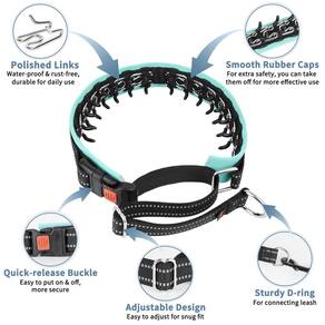 - Coleira de treinamento eficaz e científica: os elos intermediários sincronizados fornecem pressão consistente, imitando como uma cadela corrige seus filhotes usando os dentes. A coleira anti-puxar cães proporciona uma sensação suave que ensina seu animal de estimação a andar ao seu lado em vez de puxar ou perseguir carros.