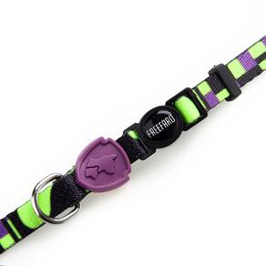 Fecho de pressão que abre sozinho caso o gato fique preso;