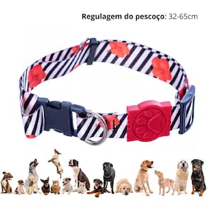 Estilo, conforto e segurança para o seu pet com a Coleira Estampa de Listras com Flor.