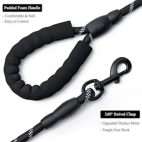 - ?Confortável de segurar?O design especial de alça acolchoada macia oferece conforto extra, que oferece uma aderência firme. Aproveite a sensação de caminhar com seu cão e protege sua mão contra queimaduras de corda para conforto e controle incríveis.