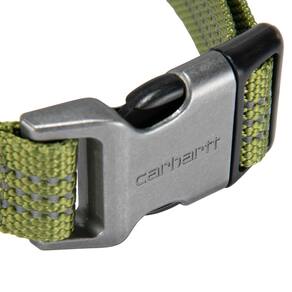 Carhartt Coleiras de nylon totalmente ajustáveis para cães, costura reflexiva para visibilidade, musgo leve (correia de nylon), média - Carhartt Coleira para cães feita de construção robusta e costura tripla refletiva para cães que trabalham 24 horas por dia, 7 dias por semana - A coleira ultradurável serve para qualquer tarefa que vier ao seu cão. Feita de nylon durável com trama de lona de pato - Costura tripla refletiva para visibilidade em pouca luz. Protetor e ajustador de alça de plástico - Anel em D de metal com fenda robusta com capacidade de segurar a etiqueta - Tamanho: Médio (pescoço: 30,5 - 45,7 cm Largura da gola: 3/10.2 cm) Grande (pescoço: 45.7 cm- 66.0 cm Largura da gola: 2.5 cm) Medida na base do pescoço. Observação: não meça muito alto no pescoço, pois isso pode resultar em uma medição menor do que a ideal