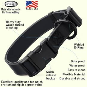FIVELA DE LIBERAÇÃO RÁPIDA: Fácil de colocar e tirar com nossa fivela de liberação rápida projetada para total eficiência. Um anel D resistente o torna compatível com nossa coleira impermeável Biothane e fornece um local para colocar uma etiqueta de identificação.