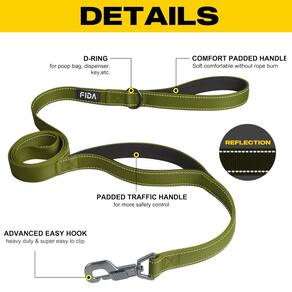 A coleira para cães padrão resistente Fida com um fecho super fácil avançado - "gancho de bloqueio automático" que faz você prender o cão animado com mais conveniência. Duas alças acolchoadas macias oferecem o máximo de conforto e suporte em todas as configurações. Os novos pontos de fita de nylon grossa fornecem mais durabilidade para durar muito tempo. 1,5 m de comprimento para opção, perfeita para correr e fazer caminhadas com seu filhote.