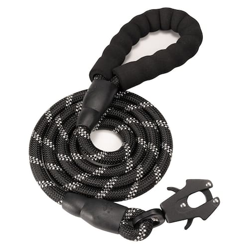 - ?Coleira padrão? - A coleira para cães GEIT é feita de uma correia de corda resistente padrão de escalada de 1,27 cm de diâmetro, a coleira flexível de nylon durável mantém você e seu cão seguros. Esta coleira para cães de 1,5 m de comprimento é o equilíbrio perfeito entre liberdade e controle para caminhar, correr e treinar.
