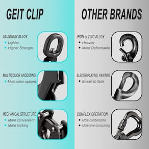 - ?Clipe de sapo de fechamento automático? - A fivela é feita de liga de alumínio, o processo de oxidação anódica é adotado, forte e durável. Clipe de coleira de cachorro de liberação rápida e trava enquanto segura firmemente sob forte puxão. O anel giratório de 360° pode evitar que o cinto se enrole.