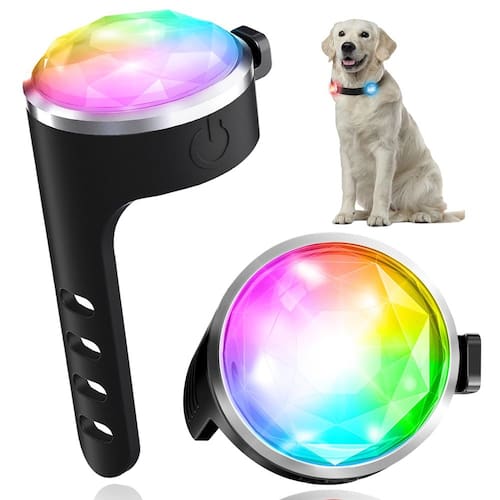 - ?Bonito e brilhante?A luz de LED para coleira de cachorro é o mais novo design em forma de diamante que é mais brilhante e mais bonito do que as luzes comuns para cães. Seus animais de estimação podem ser visíveis a até 1500 metros de distância ao caminhar à noite. Você sempre saberá onde seu animal de estimação está.