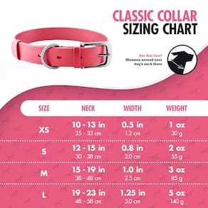 - Tamanhos convenientes para todas as raças – não apenas uma coleira de raça grande, esta coleira forte está disponível em 4 tamanhos para acomodar todos os tamanhos de raças de cães. (veja as imagens para a tabela de tamanhos) Coleira para cães PP: 25,4-33 cm - Coleira de cachorro pequena: 30,5-38,1 cm - Coleira de cachorro média: 38-48 cm - Coleira de cachorro grande: 48 - 58 cm). Selecione o tamanho correto com base na circunferência do pescoço do seu cão. Meça ao redor do pescoço onde a gola ficaria confortavelmente.