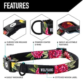 Wolfgang Coleira resistente para cães ajustável com fivela de nylon de liberação rápida para caminhadas e treinamento, estampa floral escura, média