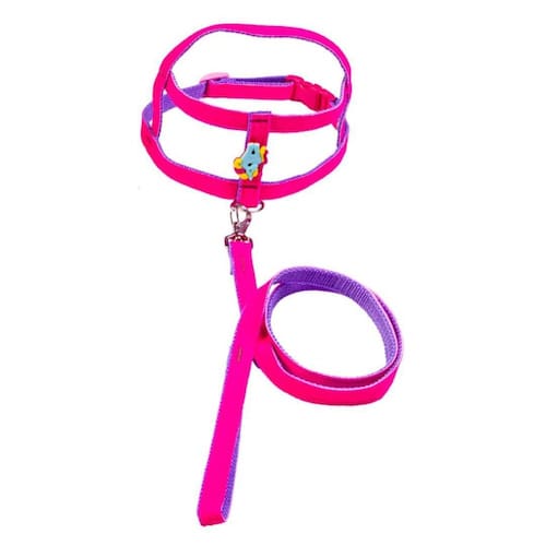 Peitoral tradicional com apliques diversos para cães - peitoral confeccionado em camurça 15mm; - com apliques diversos; - guia de camurça 90cm; - mosquetão médio com trava de segurança; - indicado para cachorros de pequeno e médio porte. - na cor: rosa; - tamanho: nº 00; Medidas número 00: Nº. 00 - 24cm de circunferência do pescoço, 32cm à 38cm de circunferência tórax; Marca: Nicapet Ean: 7898947729275