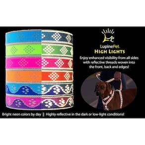 Coleira refletiva de tremoço para cães pequenos, com 3/4 polegadas de largura, que se ajusta de 9" a 14"