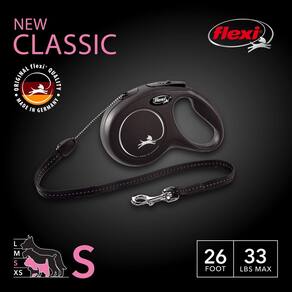 FLEXI Nova coleira retrátil clássica para cães pequenos de até 15 kg – 7,9 m, preta | Coleira de caminhada para animais de estimação sem emaranhados com freio de uma mão, pausa, trava. Produto de