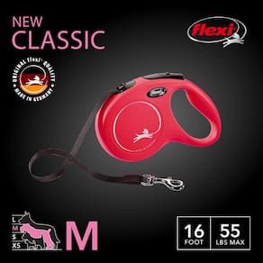 FLEXI Nova coleira retrátil clássica para cães de tamanho médio de até 25 kg – 5 m, vermelha | Coleira de caminhada para animais de estimação sem emaranhados com freio com uma mão, pausa, trava |