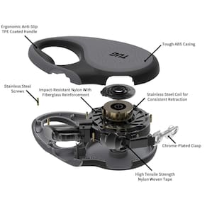 - Coleira de fita de 4,8 m com retração de fácil ajuste; movimento de fita de 360 graus livre de emaranhados