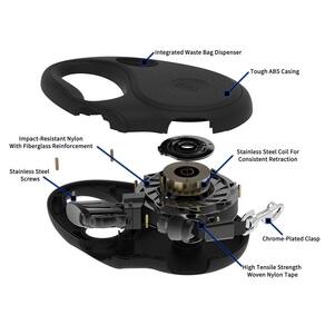 - Coleira de fita de 4,9 m com retração de fácil ajuste; movimento de fita sem emaranhamento de 360 graus