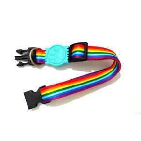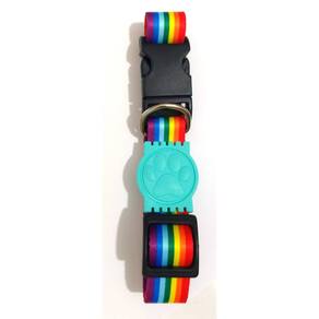 Coleiras confeccionadas em fita 25 mm de seda estampa arco iris; Presilha de plástico altamente resistentes com passadores de ajuste e borracha em formato de pata; cor: arco iris Tamanho único. Especificações Circunferência: 32 a 49 cm. O seu pet vai ficar todo estiloso e alegre com a coleira de seda. Marca: Nica pet