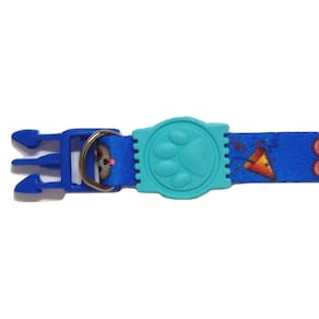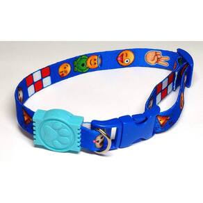Coleiras confeccionadas em fita 15 mm de seda estampa do Pac Man na cor azul; Presilha de plástico altamente resistentes com passadores de ajuste e borracha em formato de pata; Cor: azul Tamanho único. Circunferência: 22 a 35 cm. O seu pet vai ficar todo estiloso e alegre com a coleira de seda. Marca: Não Informado