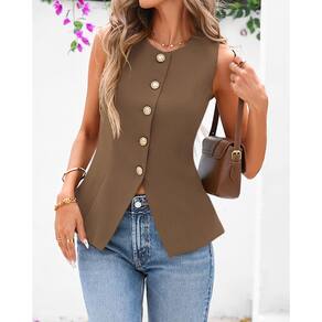 Colete BTFBM Summer Blazer sem mangas para mulheres Coffee XXL