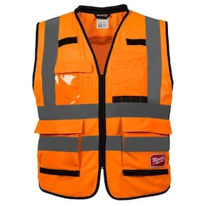 Os Coletes de Segurança Refletivos da Milwaukee oferecem amplo armazenamento com 15 bolsos, incluindo porta-ID, bolso para tablet e três bolsos internos. Os bolsos frontais são reforçados com tecido de alta resistência a rasgos 600D para maior duração, e a gola acolchoada proporciona conforto.