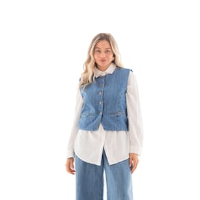 O Colete Jeans é ideal no guarda-roupas feminino, confeccionado em material jeans 100% Algodão e lavação diferenciada. Possui fechamento por botões no entremeio e bolsos. Sendo uma peça versátil que pode ser usada aberta ou fechada. Capaz de transformar um look simples, ao look mais despojado, tanto no verão como no inverno ele sempre é bem-vindo. Composição: 100%Algodão