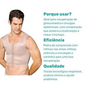 A Cinta Compressiva Pós-Ginecomastia Macom foi desenvolvida especialmente para auxiliar na recuperação de procedimentos cirúrgicos como a ginecomastia e cirurgias abdominais.