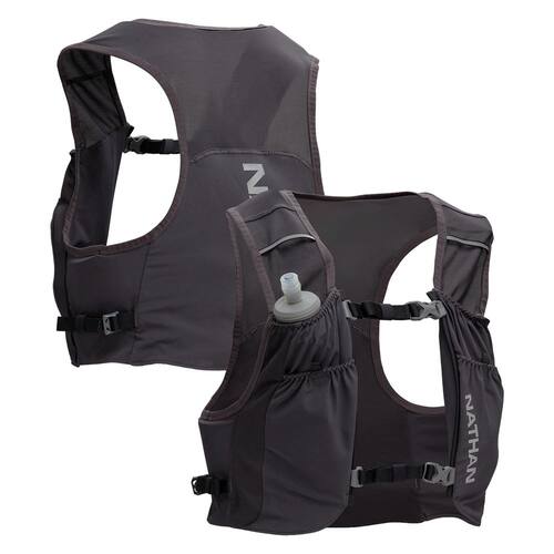 LIGHT AS AIR O colete ultraleve possui malha elástica e tecido elástico para máxima respirabilidade e conforto. HIDRATE COM MAIS RAPIDEZ E FACILIDADE Fácil de usar e acessar frascos macios nos bolsos frontais. ARMAZENAMENTO PERFEITO Na quantidade certa de bolsos, 4 frontais e 1 bolso traseiro principal com zíper que podem acomodar uma jaqueta, chapéu e outros objetos de valor. - Colete unissex com ajuste de compressão, projetado com costas mais longas para melhor ajuste e função. Os ombros e a parte superior das costas são feitos de malha elétrica para máxima respirabilidade e conforto ultraleve e adaptável, bolso traseiro com capacidade de 1,5 L e fecho de zíper na entrada direita, projetado para guardar jaquetas, itens essenciais e objetos de valor. 4 bolsos frontais cabem garrafas e frascos de até 20 onças, o colete vem com frasco macio Nathan x Hydrapak de 14 onças com fundo cônico. Ajuste de corrida sem saltos. - Colete unissex com ajuste de compressão, projetado com uma parte traseira mais longa para o melhor ajuste e função. O colete vem com frasco macio Nathan x Hydrapak de 14 onças com fundo cônico. As alças de ajuste frontal, esterno e lateral foram projetadas para um ajuste sem ressaltos. Os ombros e a parte superior das costas são feitos de malha elétrica para máxima respirabilidade e conforto adaptável ultraleve. ampla variedade de tamanhos unissex que se adapta a dois tamanhos: XXS-XS, S-M, L-XL e XXL - 4 bolsos frontais cabem em garrafas e frascos de até 20 onças. Capacidade de armazenamento: 91,5 pés cúbicos/1,5L. Peso sem frasco: 4,4 onças/125,4 g. Peso com frasco: 5,5 onças/156,6 g