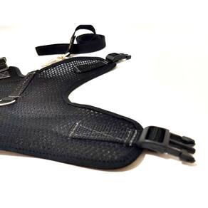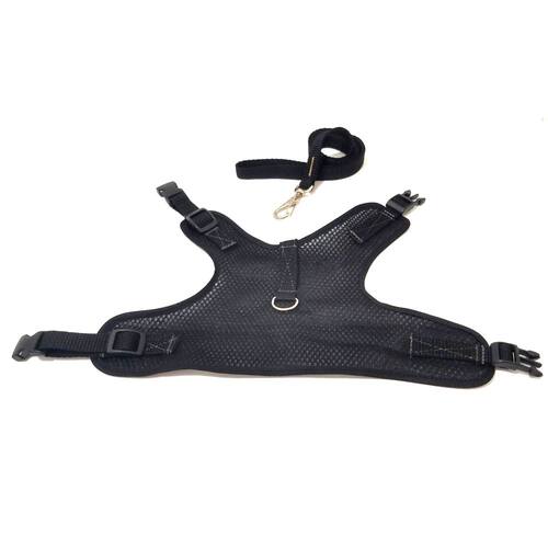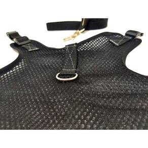 Tecido aerado spacer na cor preta; Acabamento em viés preto; Regulagem em fita de nylon e presilhas plastica; Guia de 90 cm de comprimento; Super confortável; Segura e resistente; Cor: preta; Tamanho: GG Medidas aproximadas: 42 cm de comprimento, 54 cm de circunferência torax, 34 cm de circunferência pescoço. Estilo, conforto e elegância. Marca: Não Informado