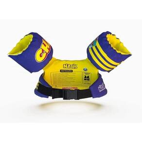 O modelo kids da vopen foi desenvolvido para dar maior mobilidade, conforto e segurança para às crianças. As bóias dos braços ajudam a criança a nadar melhor e com muito mais segurança, pois elas tem uma alta flutuabilidade. Possui costuras muito resistentes, para uma maior segurança. Material interno flutuante de polietileno expandido com células fechadas que absorvem menos água. A regulagem é feita através de um engate em nylon e cinto na parte de trás do produto que possibilita regular de acordo com o tamanho da criança. Bóias laterais costuradas ao corpo do produto, e não são infláveis.