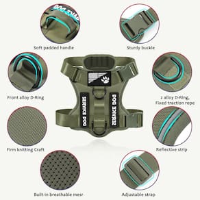 Embalagem: 1 peitoral para cães, 5 adesivos. Duas alças ajustáveis: Nosso peitoral para cães tem 2 alças ajustáveis, pode ser ajustado de acordo com o tamanho do cão para se ajustar perfeitamente ao corpo do cão e proporcionar melhor conforto. Equipado com três anéis de tração de metal, que podem evitar asfixia ou tensão no pescoço, o que é muito adequado para treinamento de cães ou cães que tendem a puxar. Respirável e resistente ao desgaste: Feito de nylon Oxford reforçado, malha embutida, que é confortável e respirável, pode ser usada em todas as estações e em todas as estações, pode proteger perfeitamente a pele do cão. Fácil de colocar: Pode ser utilizado de lado, não precisa passar pela cabeça do cão, se livrar dos problemas dos métodos de uso tradicionais e pode ser colocado e retirado facilmente e conveniente Mapa de tamanhos: PP - adequado para circunferência do pescoço do cão: 25-38 cm, circunferência do peito: 35-53 cm P - adequado para circunferência do pescoço do cão: 26-44 cm, circunferência do peito: 39-62 cm M - adequado para circunferência do pescoço do cão: 31-51 cm, circunferência do peito: 48-77 cm G - adequado para circunferência do pescoço do cão: 41-62 cm, circunferência do peito: 58-98 cm GG - adequado para circunferência do pescoço do cão: 40-68 cm, circunferência do peito: 61-97 cm Observação: meça a parte mais larga do peito e pescoço do cão e consulte nossa tabela de tamanhos para escolher o tamanho. Para garantir que o tamanho do peitoral corresponda ao tamanho do seu cão. Não escolha um tamanho ou adivinhe com base no peso do cão. Como usar um arnês para cães: 1. Abra as duas fivelas no pescoço e no peito. 2. Coloque um pé do cão na parte central das duas alças e coloque o outro pé no lado esquerdo do peito do peitoral 3. Passe a alça ao redor do pescoço e da cintura do cão 4. Aperte as fivelas 5. Ajuste o aperto do peito e pescoço - Evita puxar e engasgar: o peitoral para cães Demigreat tem três laços de corda de tração de metal, localizados na parte de trás e no peito, e são equipados com uma correia reforçada. O grampo frontal evita que seu cão puxe ao caminhar, perfeito para treinamento de cães ou cães que tendem a puxar. O clipe traseiro pode fazer o cão caminhar ou correr facilmente. Este design especial pode distribuir uniformemente a força de tração no corpo para evitar asfixia ou tensão no pescoço, oferece muito mais conforto e segurança. - ?Fácil de colocar e ajustável? - Este colete para cães tem duas fivelas no peito e pescoço, sem deslizar sobre a cabeça do cachorro, pode ser facilmente colocado e retirado. Fácil de ajustar, o tamanho pode se ajustar perfeitamente ao corpo do cão, torná-lo mais confortável e garantir que o peitoral esteja firmemente fixado. - Arnês refletivo para cães: a fita reflexiva do peitoral para cães Damigreat pode refletir a luz ambiente em condições de pouca luz, para garantir que seu cão fique visível mesmo ao caminhar ou correr à noite, e vem com 2 adesivos para cães de serviço, adesivos de treinamento de 5 cm e 1 adesivo de pata de cachorro. - ?Macio e confortável?- nosso peitoral antipuxão para cães adota estrutura superior e inferior de duas camadas. A camada externa é feita de nylon Oxford reforçado e tecnologia de tricô reforçada. É forte e durável. O design interno de malha é confortável e respirável, o que aumenta o conforto de caminhar e protege a pele do seu cão. - ?Vantagens da Demigreat ?- Estamos comprometidos em fornecer produtos confiáveis para todos os donos de cães. Se você encontrar algum problema ao usar o produto, a tempo e faremos o nosso melhor para ajudá-lo a resolvê-lo. Observação: selecione o tamanho medindo a parte e o pescoço mais largos do peito do cão e consulte nossa tabela de tamanhos para garantir que o tamanho do peitoral corresponda ao tamanho do seu cão. Não escolha um tamanho ou adivinhe com base no peso do cão.