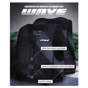 Colete Salva Vidas Wave JOGÁ Características Os Coletes Salva Vidas são itens indispensável e de porte obrigatório para qualquer embarcação, mas além da obrigatoriedade, são totalmente viáveis para sua segurança e sobrevivência em caso de algum tipo de acidente ou naufrágio.E a Jogá, marca nacional e que vem se destacando no mercado pela grande qualidade nos seus produtos, desenvolveu a linha de Coletes Salva Vidas Wave, um equipamento com alto poder de flutuação, desenvolvido totalmente com matérias-primas nacionais, e conta com equipamento auxiliar de flutuação, ajustes laterais para aperto junto ao corpo, conta com fechamento frontal com zíper, conta ainda com cintos de segurança com ajustes, sendo uma vertical com possibilidade de armazenamento interno.O Colete Salva Vidas Wave é ideal para a navegação em qualquer tipo de situação como rios, lagos, lagoas, açudes, canais de pesca, mangue e até mesmo no mar Com total segurança e conforto, além de uma grande durabilidade e um dos melhores custo benefício do mercado atual. Especificações Fabricante: JOGÁ Modelo: Wave Peso Máx. Suportado: 150 kg Produto não homologado Produzido com matéria prima nacional Ajuste lateral com elástico Fechamento frontal com zíper Equipamento auxiliar de flutuação EAF Informações e cuidados de uso na parte interna do colete. Correias de segurança com ajuste 1 vertical com armazenamento interno Cor: Preto
