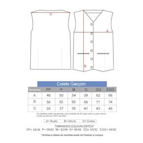 O COLETE PARA GARÇOM é produzido em OXFORD.