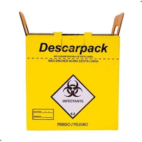 Coletor Material Perfuro Cortante 20 Litros Un. DescarpackClassificação HOSPITALAR Registro MAPA ISENTO Registro MS ISENTO Coletor para Material Perfurocortante DescarpackbrFabricado em papelão ondulado e reforçado internamente com papelão couroTrava de segurançaDesconectador de agulha no modelo 1,5 LAlça dupla para transporte nos modelos 7,0 L, 13,0 L e 20,0 LDisponível na cor amarela