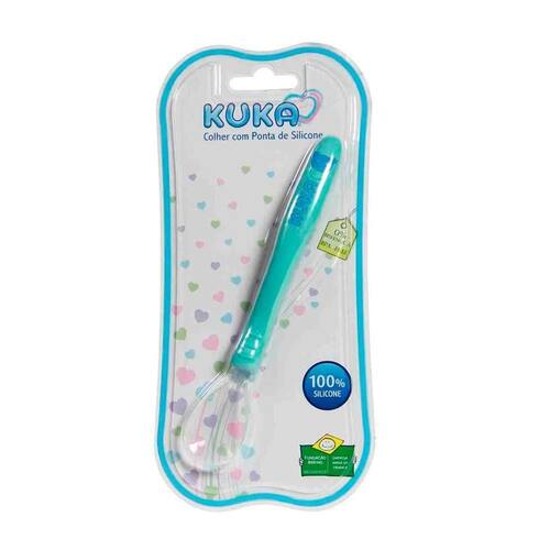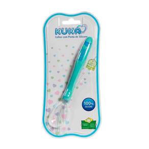 Colher azul com ponta de silicone - kuka A colher com ponta de silicone da kuka é perfeita para as primeiras refeições, pois é macia ao contato com a gengiva e não machuca o bebê. Ela também é ideal para a fase de introdução de alimentos sólidos, tem o cabo ergonômico, anti-deslize, ponta em silicone ultramacio e super fácil de limpar. As suas bordas são arredondadas para não machucar as gengivas do bebê. Produzida especialmente para a alimentação de crianças a partir de 4 meses.
