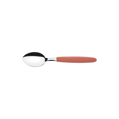 Seu chá da tarde vai ganhar um toque especial com a Colher de Chá Tramontina Ipanema com Lâmina em Aço Inox e Cabo de Polipropileno Goiaba. Com lâmina produzida em aço inox e cabo de polipropileno, ela é resistente, durável e vai proporcionar uma mesa muito mais especial e atraente, devido a cor goiaba. Além disso, ela é muito fácil de limpar e pode ir à máquina de lavar louças. Com certeza, escolha perfeita para saborear o seu chá preferido! Orientações A lâmina de aço inox garante maior resistência devido a espessura do aço e a estampagem da lâmina. O cabo de polipropileno possui maior resistência e durabilidade. Pode ir à máquina de lavar louças facilitando seu dia a dia. Observações Antes da primeira utilização, lave bem a peça e seque-a.Produto cortante e perfurante: tenha cuidado ao manusear e mantenha fora do alcance das crianças.Para maior durabilidade do produto recomenda-se secar bem antes de guardar, mesmo após lavagem em máquina. Para descarte do produto e embalagem siga as orientações de reciclagem vigentes. Características Gerais EAN13 7891112282537 DUN14 17891112282534 NCM 8215.99.10 Peso Líquido 0,0135 kg. Peso Bruto 0,0135 kg. Metragem 0,000049 m³. Dimensões Embalagem (Compr. X Larg. X Alt.) 140x 27x 13 mm. Cor 1 C26E60 Hexa
