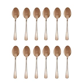 Jogo de Colher de Mesa produzido em aço inox com revestimento a base de titanium. O que resultam em peças com acabamento metalico e com brilho intenso, trazendo requinte e sofisticacao. A linha de talheres Elite da Gourmet Mix possui design atual, com linhas arredondadas sem detalhes nos cabos, com maior espessura e acabamento em alto brilho, o que da aos talheres uma aparencia leve e sofisticada. Sao produzidos totalmente em aço inox de qualidade, garantindo a durabilidade, beleza e higiene. Contem: 12 Colheres de Mesa Dimensao (C x L x P): 20 x 4,2 x 0,25 cm Pode lavar na maquina de lavar louças
