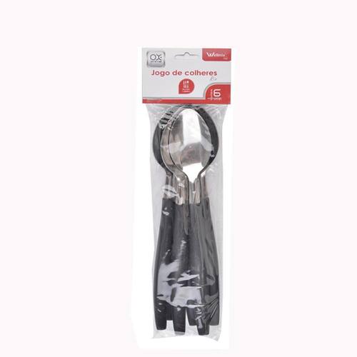 Colher De Mesa De Inox Cabo Plastico Rio Preto 6 Peças 20CmValidade: indeterminadaTamanho aproximado da colher: 20cmTamanho aproximado da embalagem: a:27xl:7,5cmPeso aproximado: 150gTipo de produto: colher de mesa rio ox prime 6 peças na solapaCor: prata com cabo pretoComposição: plastico e inox