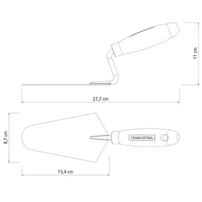 Detalhes do produto Aliando alta qualidade e resistência, a colher de pedreiro 6" Tramontina em aço com cabo em madeira é a ferramenta certa para auxiliar você na hora de construir ou reformar. Com corpo temperado, ela garante maior durabilidade e menos desgaste durante o uso. Possui lâmina de 6 polegadas produzida em aço especial. Além disso, apresenta cabo em madeira renovável com uma camada protetora em verniz, proporcionando um melhor acabamento e um toque mais liso ao produto.