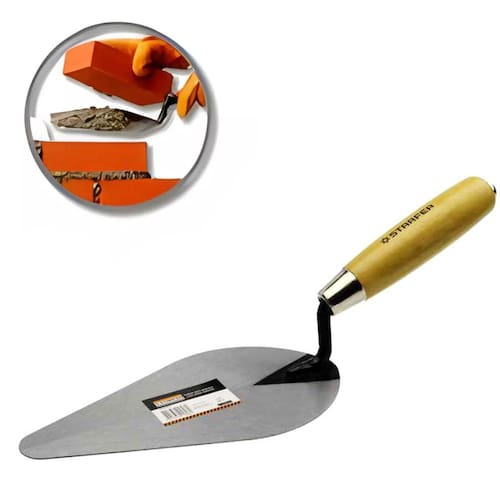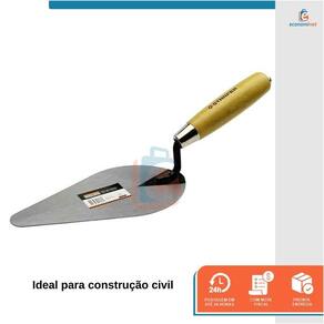 A Colher de Pedreiro é ideal para construção civil servindo para para misturar argamassa, assento de blocos, chapisco, rebocos e transferir cimento, concreto e outro material que atua como argamassa.