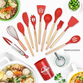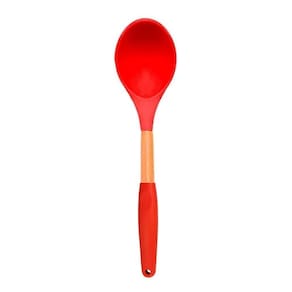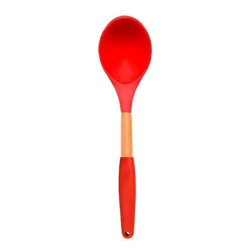 Colher de Silicone Multiuso com Cabo De Madeira Vermelho Em Casa Tem